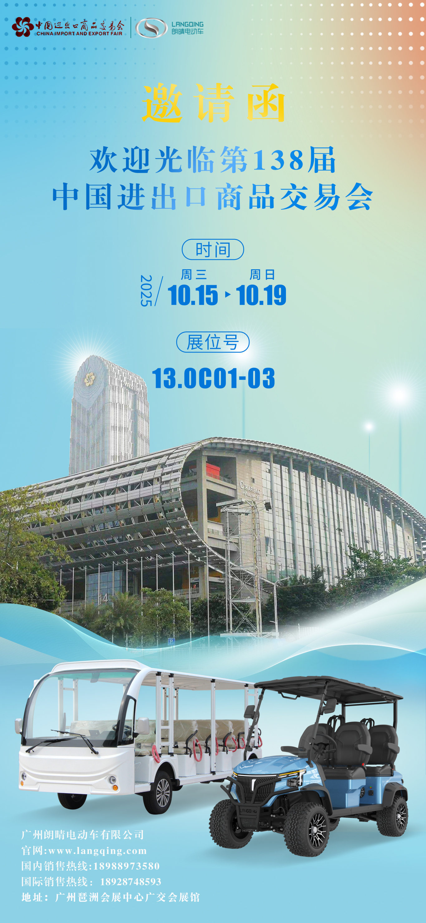 作為深耕新能源低速電動(dòng)車出行領(lǐng)域25載的企業(yè),朗晴電動(dòng)車始終以“團(tuán)結(jié)、務(wù)實(shí)、求精、守信”為核心理念,不斷探索新能源技術(shù)在出行場(chǎng)景的應(yīng)用。值此第138屆中國(guó)進(jìn)出口商品交易會(huì)(廣交會(huì))盛大啟幕之際,我們誠(chéng)邀您蒞臨【13.0C01-03】展位,共鑒朗晴電動(dòng)車的創(chuàng)新成果與品牌實(shí)力。